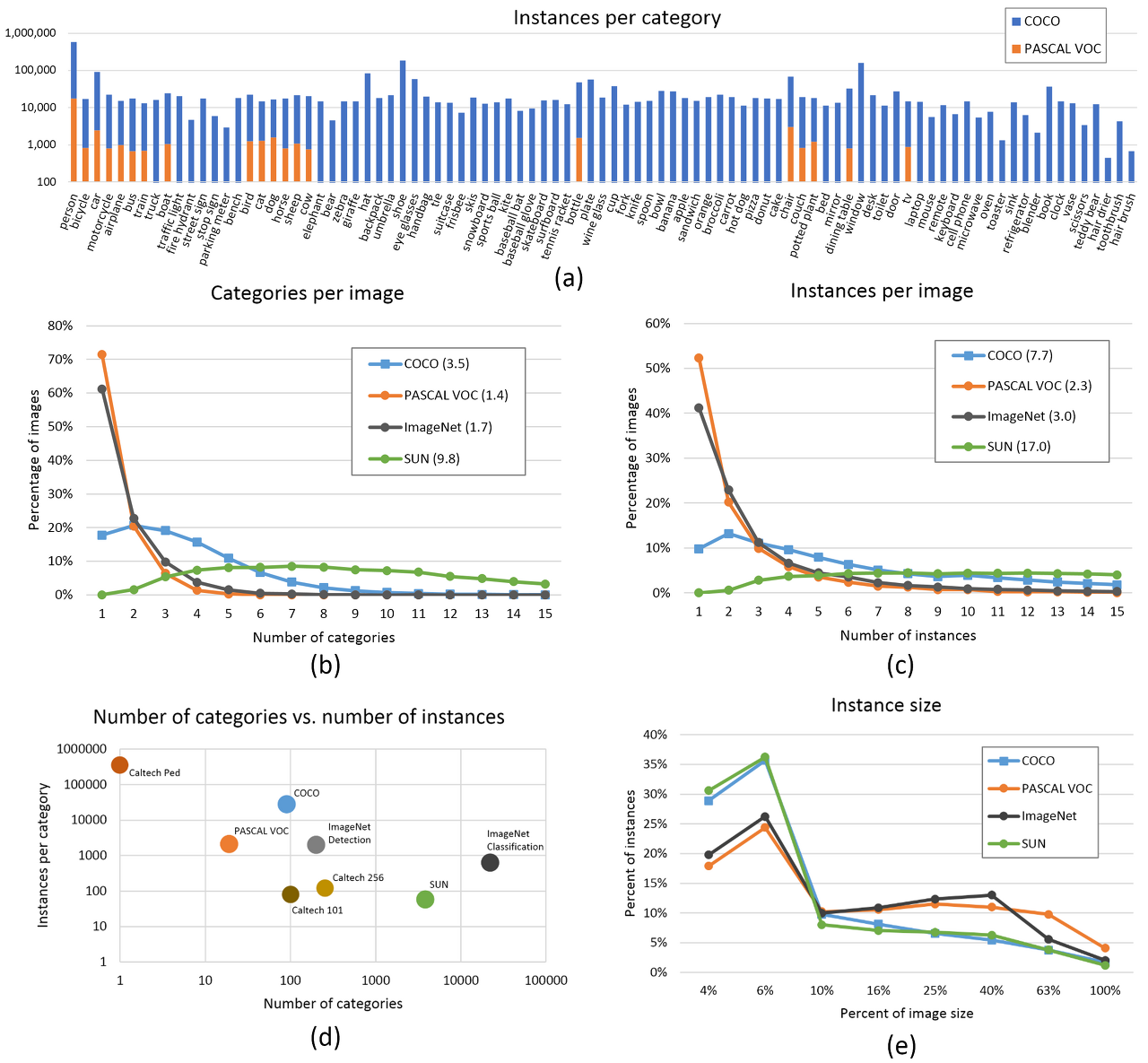 (a) COCO ๋ฐ์ดํฐ์ ์ ๊ฒฝ์ฐ ํด๋์ค๋น ์ ์ ํ ์์ ๊ฐ์ฒด๊ฐ ์กด์ฌํ๋ ๊ฒ์ ํ์ธํ ์ ์์ต๋๋ค